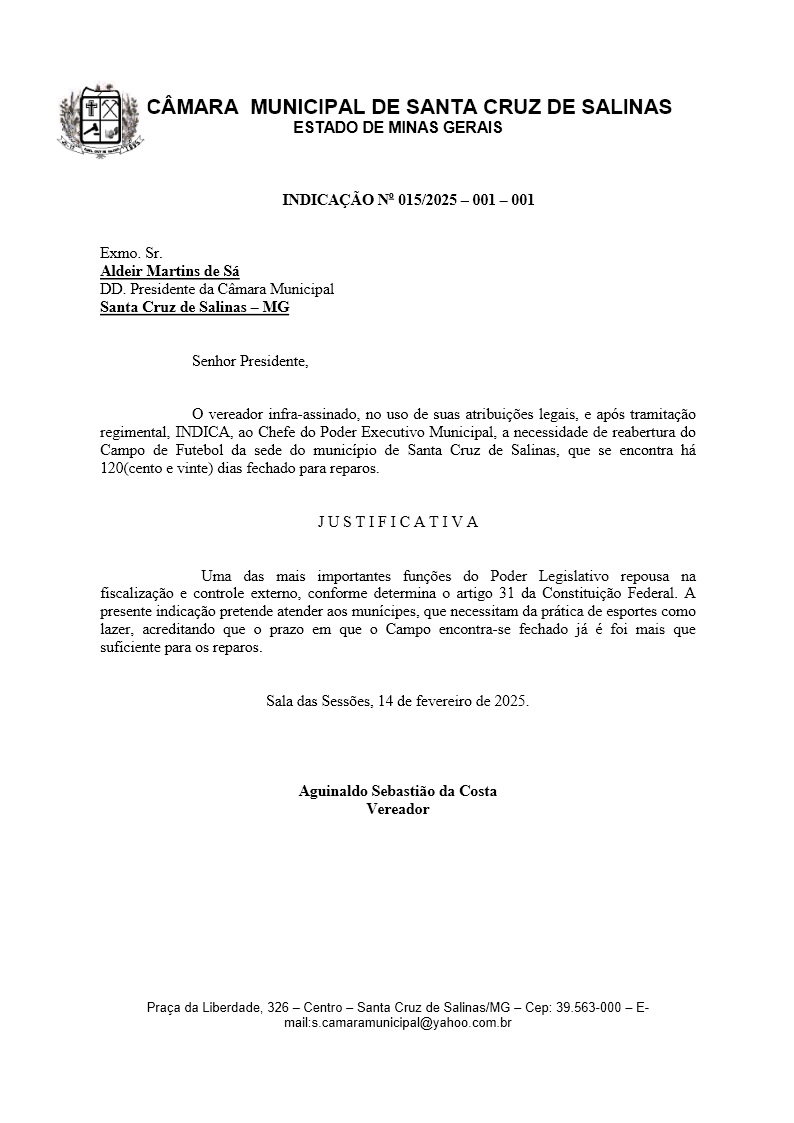 Indicação – 015/2025