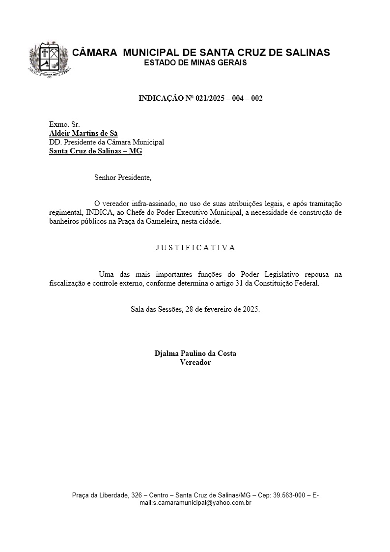 Indicação – 021/2025