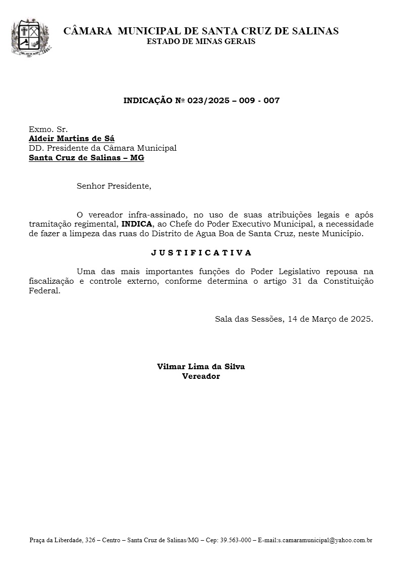 Ementa / Resumo Limpeza das ruas do Distrito de Água Boa.