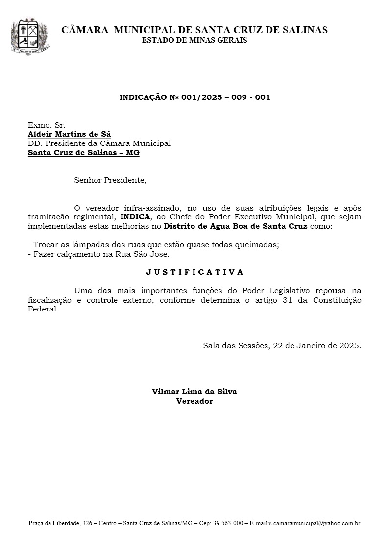 Indicação – 001/2025