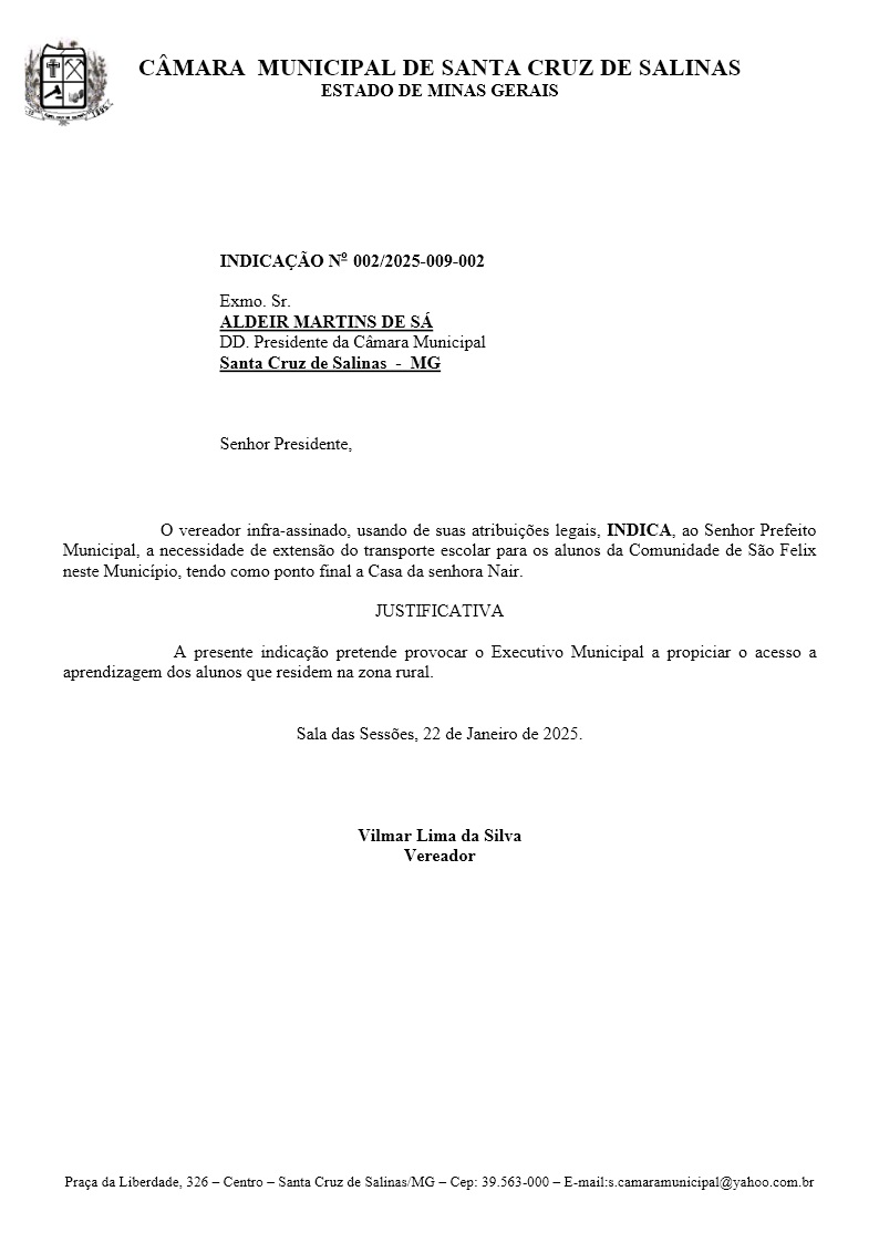 Indicação – 002/2025
